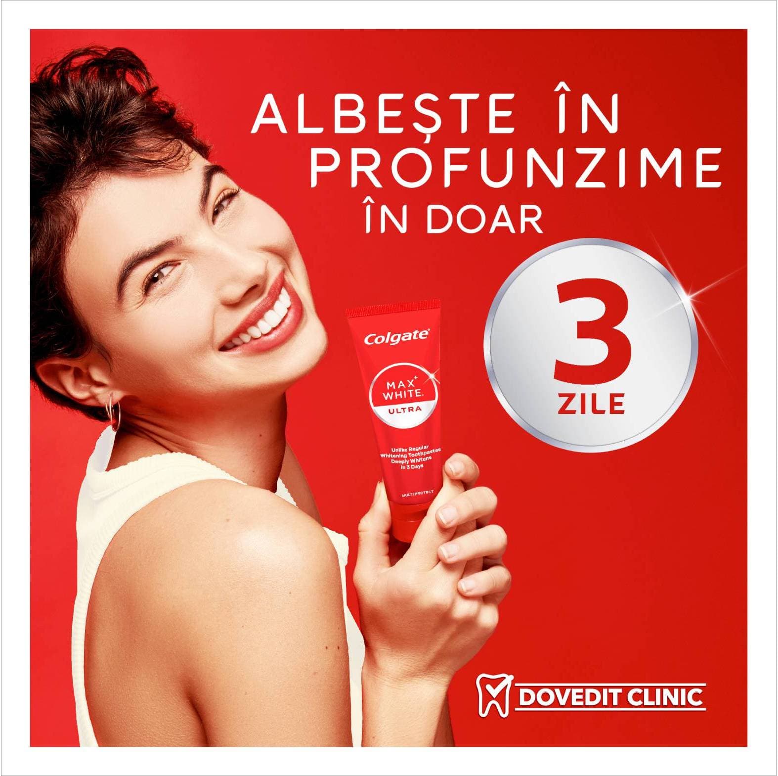 Există diferite modalități de a vă albi dinții acasă. De la paste de dinți la lumini LED de albire a dinților, Colgate Max White vă acoperă. Dacă sunteți în căutarea a ceva ce poate deveni cu ușurință parte din rutina zilnică, încercați o pastă de dinți de albire a dinților precum Colgate Max White Ultra, care vă oferă dinți mai albi în doar 3 zile* sau Colgate Max White Ultimate pentru a inversa ani de pete profunde și îngălbenire.